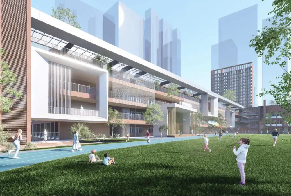 本項目位于深圳市龍崗中心組團(tuán)的城市商貿(mào)功能區(qū),北鄰龍園路,南鄰簡湖路,西側(cè)為簡新路,地塊間隔大興路,距龍城廣場地鐵站約400米。項目用地規(guī)模為31160平方米,總建筑面積約為87875平方米,教職工宿舍約17516平方米,其它教學(xué)用房約69034平方米,最大單體建筑面積超20000平方米,共72班(48班小學(xué)+24班初中),可提供3360個學(xué)位,滿足片區(qū)義務(wù)教育需求,為促進(jìn)龍崗區(qū)教育事業(yè)的發(fā)展起到積極作用,項目目前已動工建設(shè),預(yù)計2024年開學(xué)。