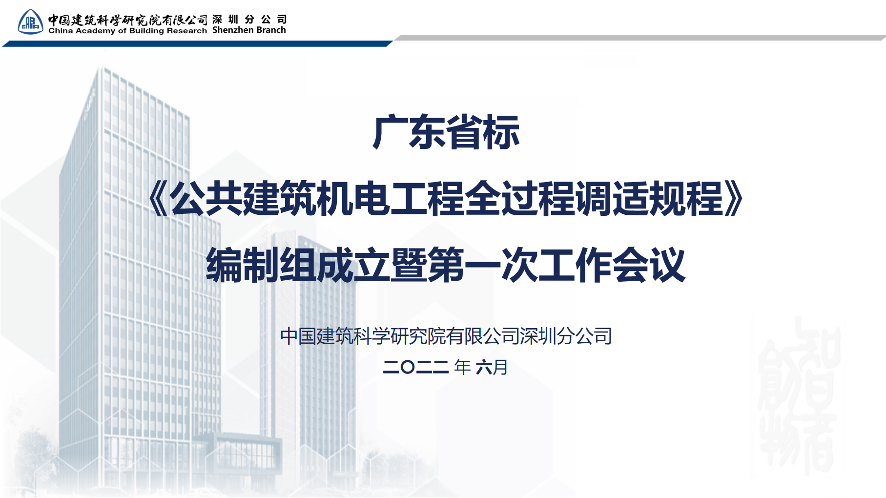 隨后,《調適規(guī)程》編制組召開了第一次工作會議。中國建研院深圳分公司對《調適規(guī)程》編制背景、工作基礎、大綱、分工和計劃等進行了詳細匯報,與會專家就上述內容進行了廣泛深入的討論并達成一致意見。根據工作計劃,編制組預計于2022年10月完成征求意見稿編制,預計于2023年3月提交報批稿。