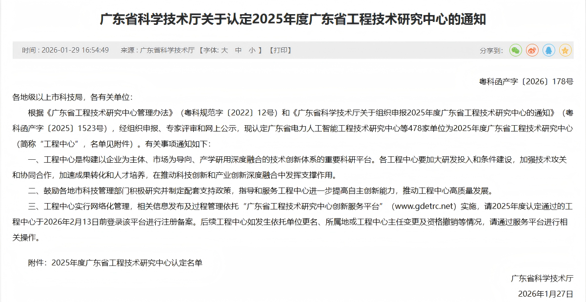 ?近日,廣東省科學技術廳正式發布2025年度廣東省工程技術研究中心認定名單,中國建研院深圳分公司下屬深圳中建院建筑科技有限公司牽頭組建的“廣東省建筑工程質量數字化檢測工程技術研究中心”成功入選,標志著深圳中建院在建筑工程質量數字化檢測領域的技術實力、創新能力與行業影響力獲得省級權威認證,彰顯出公司在賦能區域產業創新、推動建筑行業高質量發展中的責任與擔當。